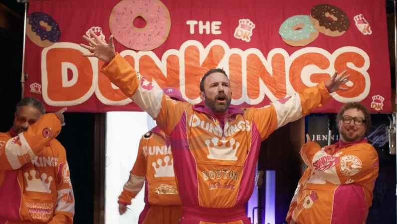 Jennifer Lopez, Ben Affleck, Matt Damon i Tom Brady w reklamie Dunkin' Super Bowl