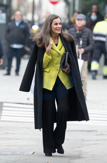 La reine Letizia d'Espagne préside une réunion de travail avec la Fédération espagnole des maladies rares (FEDER). Queen Letizia arrives at the Spanish Federation for Rare Diseases (FEDER). Madrid - February 13, 2024