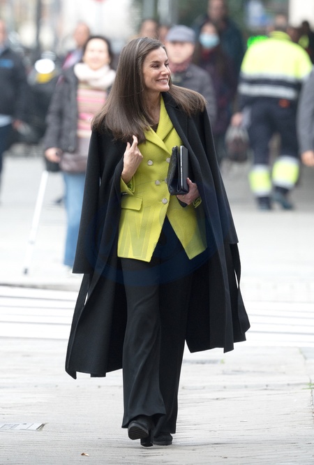 La reine Letizia d'Espagne préside une réunion de travail avec la Fédération espagnole des maladies rares (FEDER). Queen Letizia arrives at the Spanish Federation for Rare Diseases (FEDER). Madrid - February 13, 2024