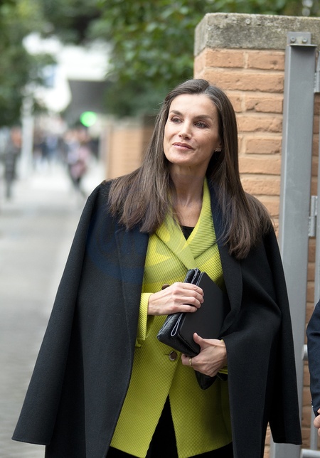 La reine Letizia d'Espagne préside une réunion de travail avec la Fédération espagnole des maladies rares (FEDER). Queen Letizia arrives at the Spanish Federation for Rare Diseases (FEDER). Madrid - February 13, 2024