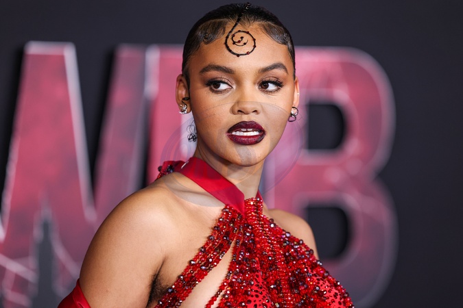 WESTWOOD, LOS ANGELES, CALIFORNIA, USA - FEBRUARY 12: Celeste O'Connor wearing a Gert-Johan Coetzee dress and Jimmy Choo shoes arrives at the World Premiere Of Columbia Pictures' 'Madame Web' held at the Regency Village Theatre on February 12, 2024 in Westwood, Los Angeles, California, United States., Credit:Xavier Collin / Avalon