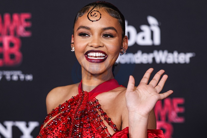 WESTWOOD, LOS ANGELES, CALIFORNIA, USA - FEBRUARY 12: Celeste O'Connor wearing a Gert-Johan Coetzee dress and Jimmy Choo shoes arrives at the World Premiere Of Columbia Pictures' 'Madame Web' held at the Regency Village Theatre on February 12, 2024 in Westwood, Los Angeles, California, United States., Credit:Xavier Collin / Avalon