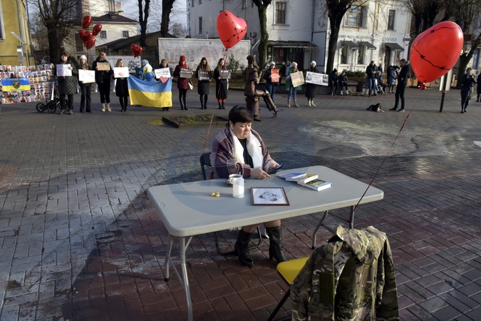 VINNYTSIA, UKRAINE - FEBRUARY 10, 2024 - Heart-shaped red balloons are pictured during a rally in Yevropeiska Square to remind about Mariupol Garrison POWs, Vinnytsia, west-central Ukraine., Credit:Oleksandr Lapin / Avalon