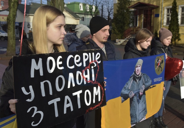 VINNYTSIA, UKRAINE - FEBRUARY 10, 2024 - Activists are gathered in Yevropeiska Square to remind about Mariupol Garrison POWs, Vinnytsia, west-central Ukraine., Credit:Oleksandr Lapin / Avalon