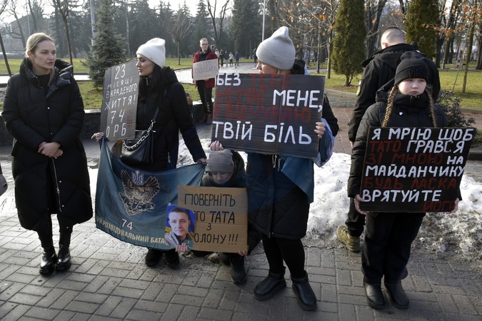 VINNYTSIA, UKRAINE - FEBRUARY 10, 2024 - Activists are gathered in Yevropeiska Square to remind about Mariupol Garrison POWs, Vinnytsia, west-central Ukraine., Credit:Oleksandr Lapin / Avalon