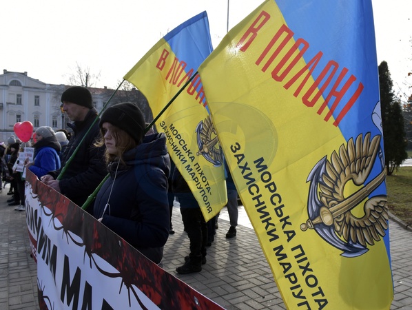 VINNYTSIA, UKRAINE - FEBRUARY 10, 2024 - Activists are gathered in Yevropeiska Square to remind about Mariupol Garrison POWs, Vinnytsia, west-central Ukraine., Credit:Oleksandr Lapin / Avalon