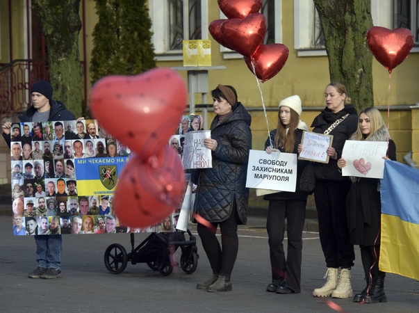 VINNYTSIA, UKRAINE - FEBRUARY 10, 2024 - Heart-shaped red balloons are pictured during a rally in Yevropeiska Square to remind about Mariupol Garrison POWs, Vinnytsia, west-central Ukraine., Credit:Oleksandr Lapin / Avalon