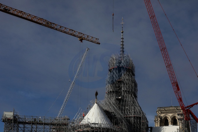 lustracje przedstawiające iglicę i koguta Notre-Dame de Paris bez rusztowania