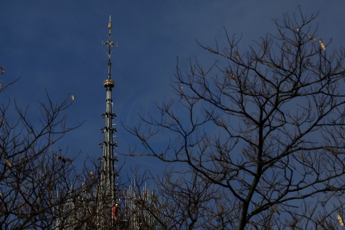 lustracje przedstawiające iglicę i koguta Notre-Dame de Paris bez rusztowania