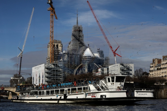 lustracje przedstawiające iglicę i koguta Notre-Dame de Paris bez rusztowania