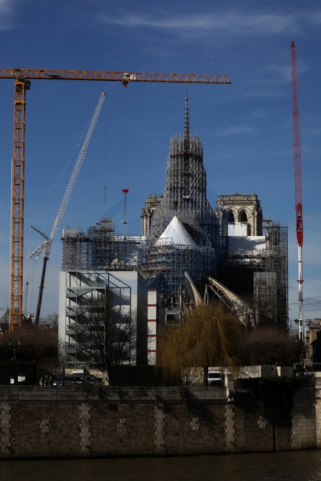 lustracje przedstawiające iglicę i koguta Notre-Dame de Paris bez rusztowania