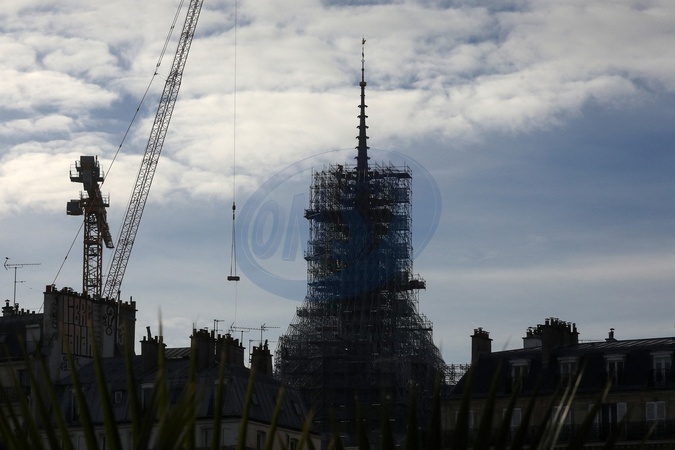 lustracje przedstawiające iglicę i koguta Notre-Dame de Paris bez rusztowania