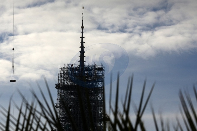 lustracje przedstawiające iglicę i koguta Notre-Dame de Paris bez rusztowania