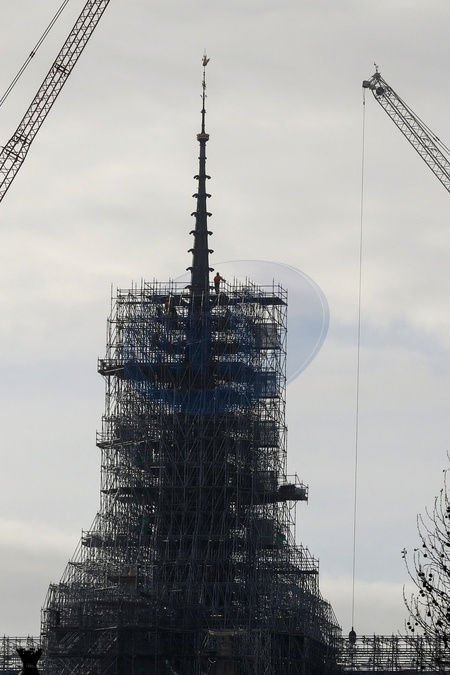 lustracje przedstawiające iglicę i koguta Notre-Dame de Paris bez rusztowania