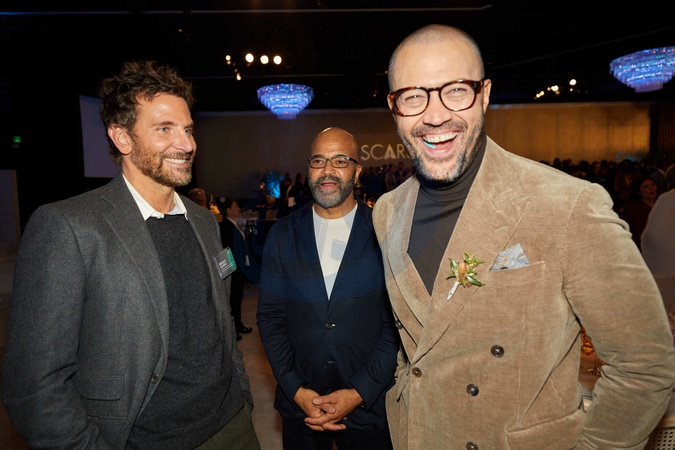 Bradley Cooper, Jeffrey Wright, and Cord Jefferson at the Oscar Nominee Luncheon held in the International Ballroom at the Beverly Hilton on Monday, February 12, 2024. The 96th Oscars will air on Sunday, March 10, 2024 live on ABC., Credit:Trae Patton/AMPAS / Avalon