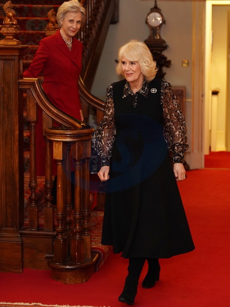 Queen Camilla, with the Duchess of Gloucester, arrives for a ceremony at Clarence House, central London, where she will be installed as an Honorary Liveryman of the Worshipful Company of Fan Makers.Picture date: Tuesday February 13, 2024., Credit:Jordan Pettitt / Avalon