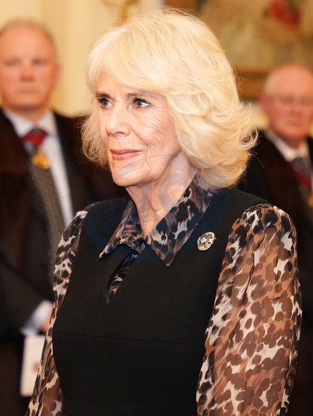 Queen Camilla is installed as Honorary Liveryman of the Worshipful Company of Fan Makers during a ceremony at Clarence House, central London. Picture date: Tuesday February 13, 2024., Credit:Jordan Pettitt / Avalon