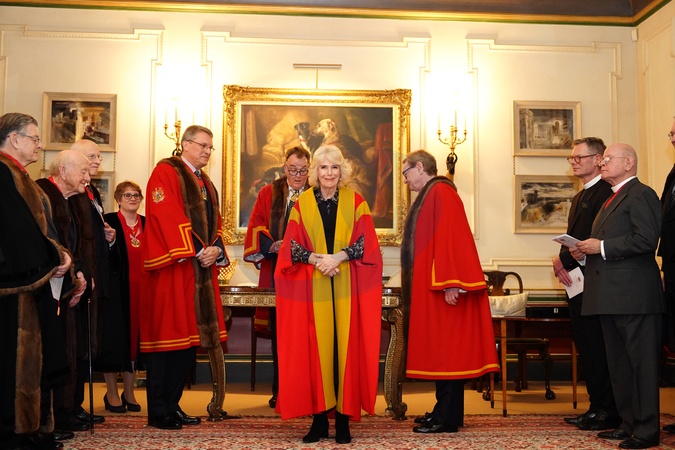 Queen Camilla is installed as an Honorary Liveryman of the Worshipful Company of Fan Makers during a ceremony at Clarence House, central London. Picture date: Tuesday February 13, 2024., Credit:Jordan Pettitt / Avalon