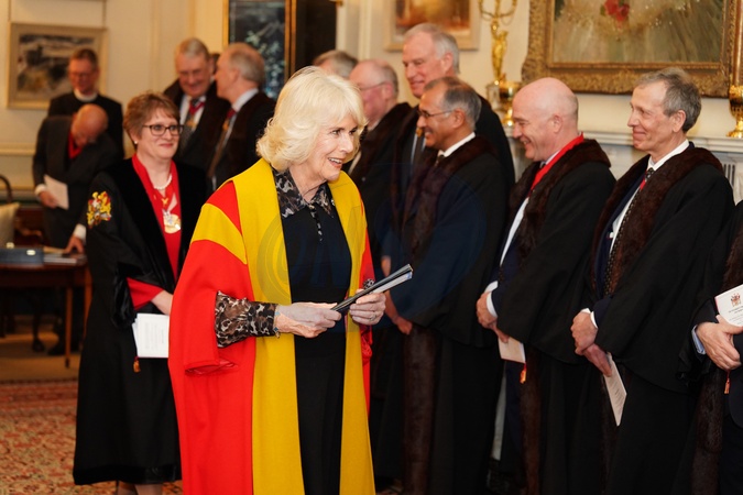Queen Camilla is installed as an Honorary Liveryman of the Worshipful Company of Fan Makers during a ceremony at Clarence House, central London. Picture date: Tuesday February 13, 2024., Credit:Jordan Pettitt / Avalon