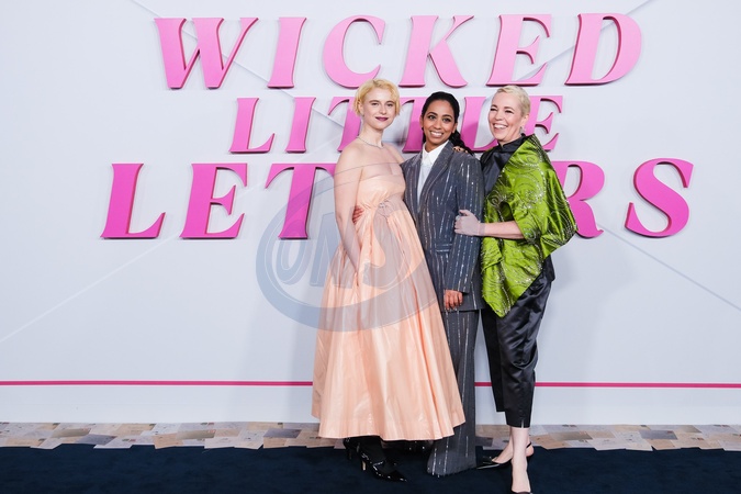 Anjana Vasan, Jessie Buckley and Olivia Colman photographed at the European premiere of Wicked Little Letters on Tuesday 13 February 2024 at ODEON LUXE Leicester Square, London. ., Credit:Julie Edwards / Avalon