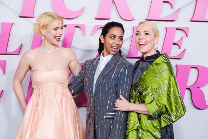 Anjana Vasan, Jessie Buckley and Olivia Colman photographed at the European premiere of Wicked Little Letters on Tuesday 13 February 2024 at ODEON LUXE Leicester Square, London. ., Credit:Julie Edwards / Avalon