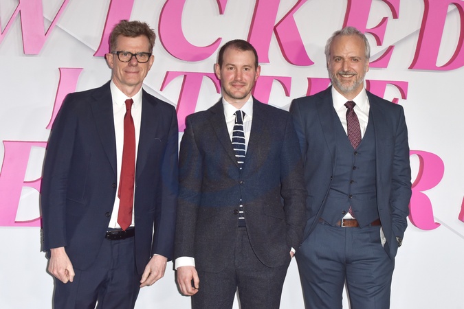 Graham Broadbent, Jonny Sweet and Ed Sinclair attends ‘ Wicked Little Letters ‘ European Premiere, at the Odeon Luxe Leicester Square in London, England. UK. Tuesday 13th February 2024 -, Credit:James Warren / Avalon