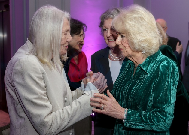 LONDON, ENGLAND - FEBRUARY 14: Queen Camilla smiles as she holds hands with Dame Vanessa Redgrave (L) with Dame Penelope Keith (C) as she attends the "Celebration Of Shakespeare" at Grosvenor House on February 14, 2024 in London, England., Credit:Chris Jackson / Avalon