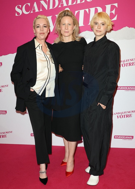 Olivia Colman, Thea Sharrock et Jessie Buckley - Avant-première du film "Scandaleusement votre" au cinéma Publicis à Paris. Le 14 février 2024 © Coadic Guirec / Bestimage Premiere of the film "Wicked Little Letters" at the Publicis cinema in Paris. On February 14th 2024