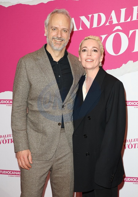 Ed Sinclair et sa femme Olivia Colman - Avant-première du film "Scandaleusement votre" au cinéma Publicis à Paris. Le 14 février 2024 © Coadic Guirec / Bestimage Premiere of the film "Wicked Little Letters" at the Publicis cinema in Paris. On February 14th 2024