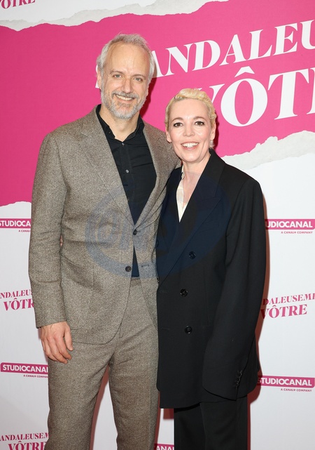 Ed Sinclair et sa femme Olivia Colman - Avant-première du film "Scandaleusement votre" au cinéma Publicis à Paris. Le 14 février 2024 © Coadic Guirec / Bestimage Premiere of the film "Wicked Little Letters" at the Publicis cinema in Paris. On February 14th 2024