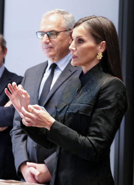 La reine Letizia d'Espagne lors de l'inauguration de la "T-2" (Tower of the Puig beauty and perfumery company) à L´Hospitalet de Llobregat. Le 14 février 2024 King and Queen of Spain attend the inauguration of the second "T-2” Tower of the Puig beauty and perfumery company. L´Hospitalet de Llobregat, Barcelona - February 14, 2024