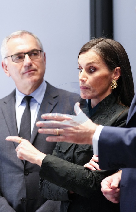 La reine Letizia d'Espagne lors de l'inauguration de la "T-2" (Tower of the Puig beauty and perfumery company) à L´Hospitalet de Llobregat. Le 14 février 2024 King and Queen of Spain attend the inauguration of the second "T-2” Tower of the Puig beauty and perfumery company. L´Hospitalet de Llobregat, Barcelona - February 14, 2024