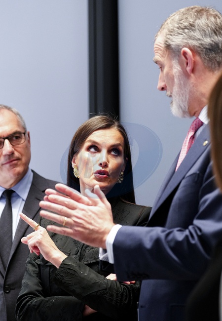 La reine Letizia et le roi Felipe VI d'Espagne lors de l'inauguration de la "T-2" (Tower of the Puig beauty and perfumery company) à L´Hospitalet de Llobregat. Le 14 février 2024 King and Queen of Spain attend the inauguration of the second "T-2” Tower of the Puig beauty and perfumery company. L´Hospitalet de Llobregat, Barcelona - February 14, 2024