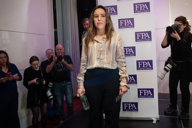 Stella Assange - wife of jailed Wikileaks founder Julian Assange, speaks at a Press conference about her husband's final appeal to happen next week - Royal Overseas League, London, England, UK on Thursday 15 February, 2024., Credit:Justin Ng / Avalon