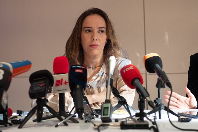 Stella Assange - wife of jailed Wikileaks founder Julian Assange, speaks at a Press conference about her husband's final appeal to happen next week - Royal Overseas League, London, England, UK on Thursday 15 February, 2024., Credit:Justin Ng / Avalon