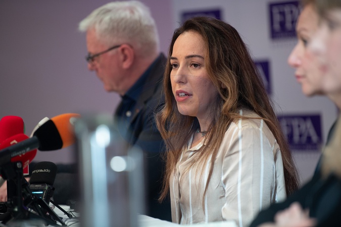 Stella Assange - wife of jailed Wikileaks founder Julian Assange, speaks at a Press conference about her husband's final appeal to happen next week - Royal Overseas League, London, England, UK on Thursday 15 February, 2024., Credit:Justin Ng / Avalon