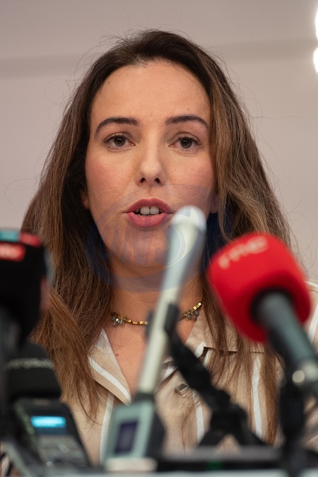 Stella Assange - wife of jailed Wikileaks founder Julian Assange, speaks at a Press conference about her husband's final appeal to happen next week - Royal Overseas League, London, England, UK on Thursday 15 February, 2024., Credit:Justin Ng / Avalon