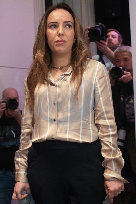 Stella Assange - wife of jailed Wikileaks founder Julian Assange, speaks at a Press conference about her husband's final appeal to happen next week - Royal Overseas League, London, England, UK on Thursday 15 February, 2024., Credit:Justin Ng / Avalon
