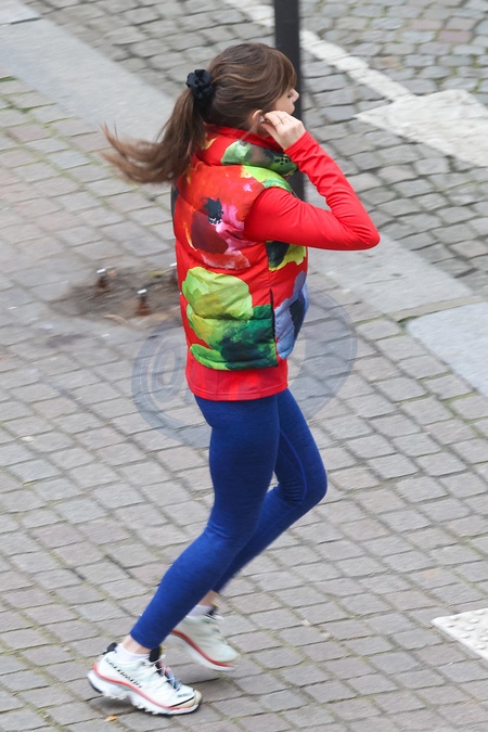 Semi-exclusif - Lily Collins sur le tournage de la saison 4 de "Emily in Paris" sur Netflix à Paris, France, le 15 février 2024. Filming of season 4 of "Emily in Paris” on Netflix in Paris, France, on February 15, 2024.