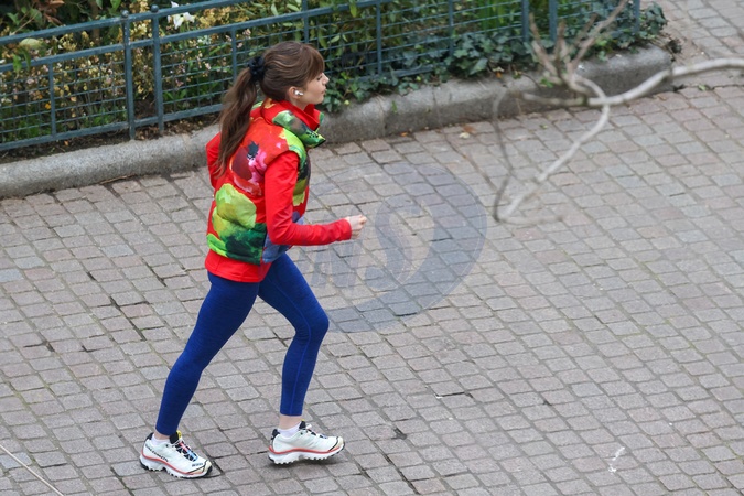 Semi-exclusif - Lily Collins sur le tournage de la saison 4 de "Emily in Paris" sur Netflix à Paris, France, le 15 février 2024. Filming of season 4 of "Emily in Paris” on Netflix in Paris, France, on February 15, 2024.