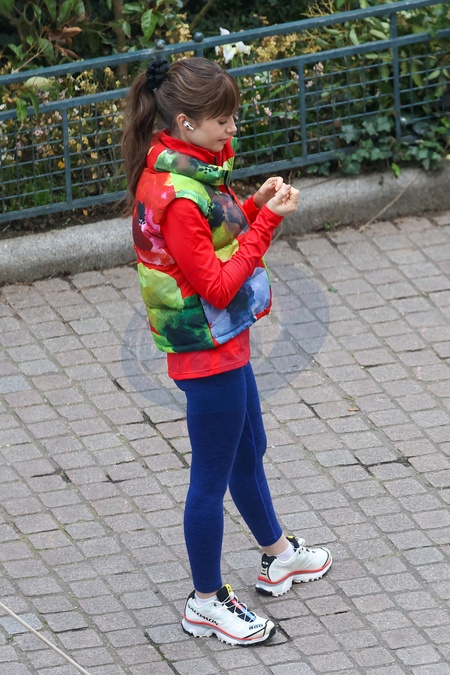 Semi-exclusif - Lily Collins sur le tournage de la saison 4 de "Emily in Paris" sur Netflix à Paris, France, le 15 février 2024. Filming of season 4 of "Emily in Paris” on Netflix in Paris, France, on February 15, 2024.