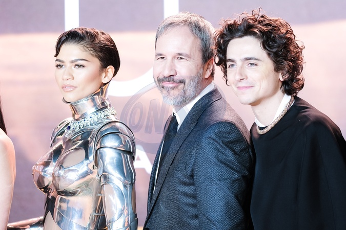 Zendaya, Denis Villeneuve and Timothée Chalamet photographed at the Warner Bros. Pictures & Legendary Present the World Premiere of Dune: Part Two on Thursday 15 February 2024 at Leicester Square, London. ., Credit:Julie Edwards / Avalon