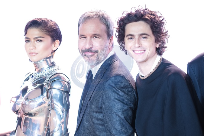 Zendaya, Denis Villeneuve and Timothée Chalamet photographed at the Warner Bros. Pictures & Legendary Present the World Premiere of Dune: Part Two on Thursday 15 February 2024 at Leicester Square, London. ., Credit:Julie Edwards / Avalon
