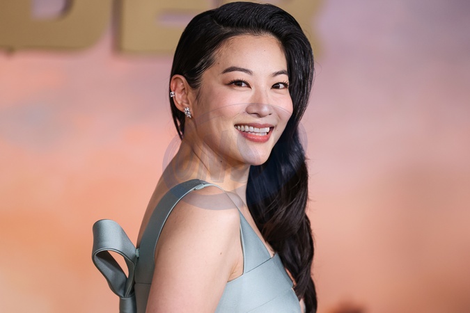 HOLLYWOOD, LOS ANGELES, CALIFORNIA, USA - FEBRUARY 15: Arden Cho wearing a Prada gown, shoes and clutch, with a B.P. De Silva ring, and De Beers jewelry, including earrings, ear cuff, bangles and ring set arrives at the World Premiere Of Netflix's 'Avatar: The Last Airbender' Season 1 held at The Egyptian Theatre Hollywood on February 15, 2024 in Hollywood, Los Angeles, California, United States., Credit:Xavier Collin / Avalon
