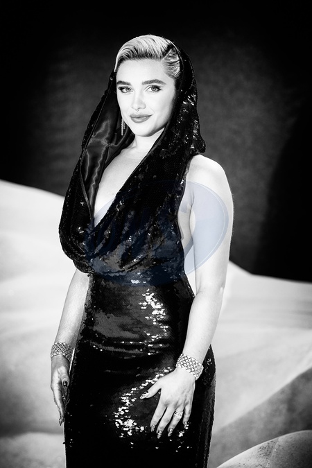 Florence Pugh photographed attending at Leicester Square in London, UK on 16 February 2024 .EDITORS NOTE: Image converted to Black and White., Credit:Julie Edwards / Avalon