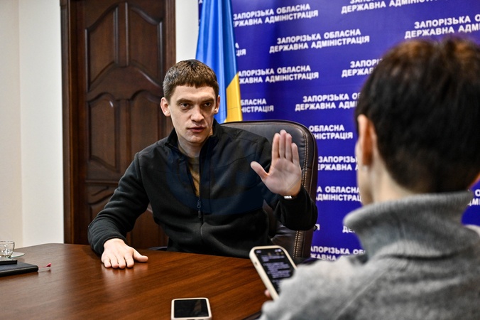 ZAPORIZHZHIA, UKRAINE - FEBRUARY 14, 2024 - Head of the Zaporizhzhia Regional Military Administration Ivan Fedorov gives an interview to a correspondent of the Ukrinform National News Agency of Ukraine, Zaporizhzhia, southeastern Ukraine., Credit:Dmytro Smolienko / Avalon