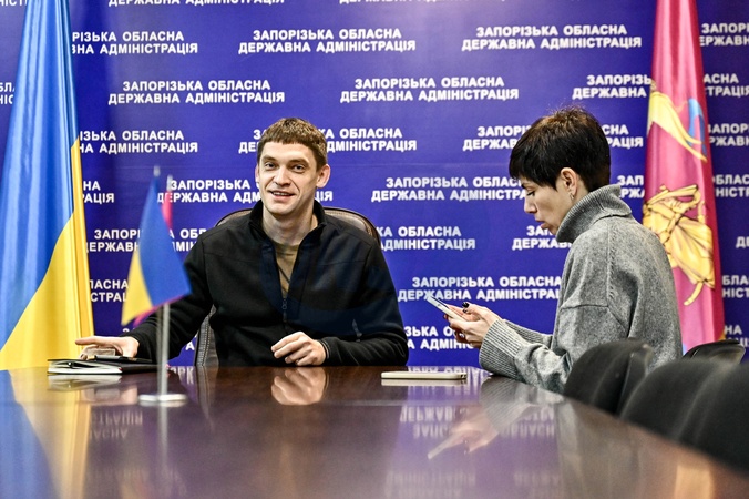 ZAPORIZHZHIA, UKRAINE - FEBRUARY 14, 2024 - Head of the Zaporizhzhia Regional Military Administration Ivan Fedorov gives an interview to a correspondent of the Ukrinform National News Agency of Ukraine, Zaporizhzhia, southeastern Ukraine., Credit:Dmytro Smolienko / Avalon