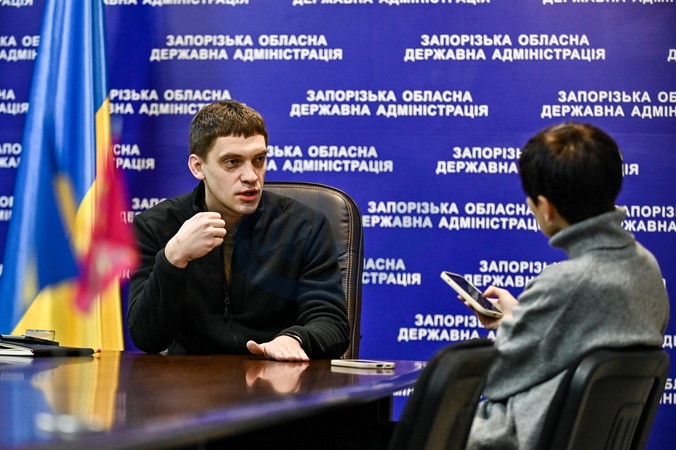 ZAPORIZHZHIA, UKRAINE - FEBRUARY 14, 2024 - Head of the Zaporizhzhia Regional Military Administration Ivan Fedorov gives an interview to a correspondent of the Ukrinform National News Agency of Ukraine, Zaporizhzhia, southeastern Ukraine., Credit:Dmytro Smolienko / Avalon