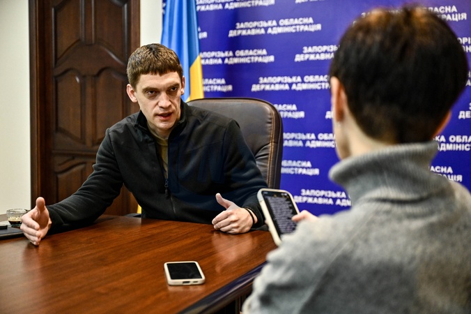 ZAPORIZHZHIA, UKRAINE - FEBRUARY 14, 2024 - Head of the Zaporizhzhia Regional Military Administration Ivan Fedorov gives an interview to a correspondent of the Ukrinform National News Agency of Ukraine, Zaporizhzhia, southeastern Ukraine., Credit:Dmytro Smolienko / Avalon