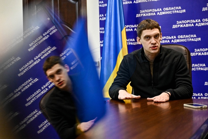 ZAPORIZHZHIA, UKRAINE - FEBRUARY 14, 2024 - Head of the Zaporizhzhia Regional Military Administration Ivan Fedorov gives an interview to a correspondent of the Ukrinform National News Agency of Ukraine, Zaporizhzhia, southeastern Ukraine., Credit:Dmytro Smolienko / Avalon